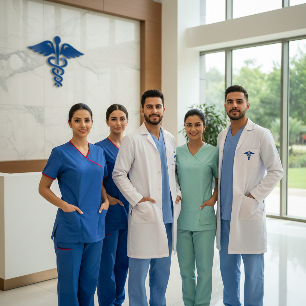 In the healthcare sector, Our medical uniforms, including scrubs and lab coats, are specifically tailored to meet the demanding needs of medical professionals. Designed for both practicality and style, our uniforms allow healthcare workers to perform their duties with confidence while maintaining a polished and compassionate appearance